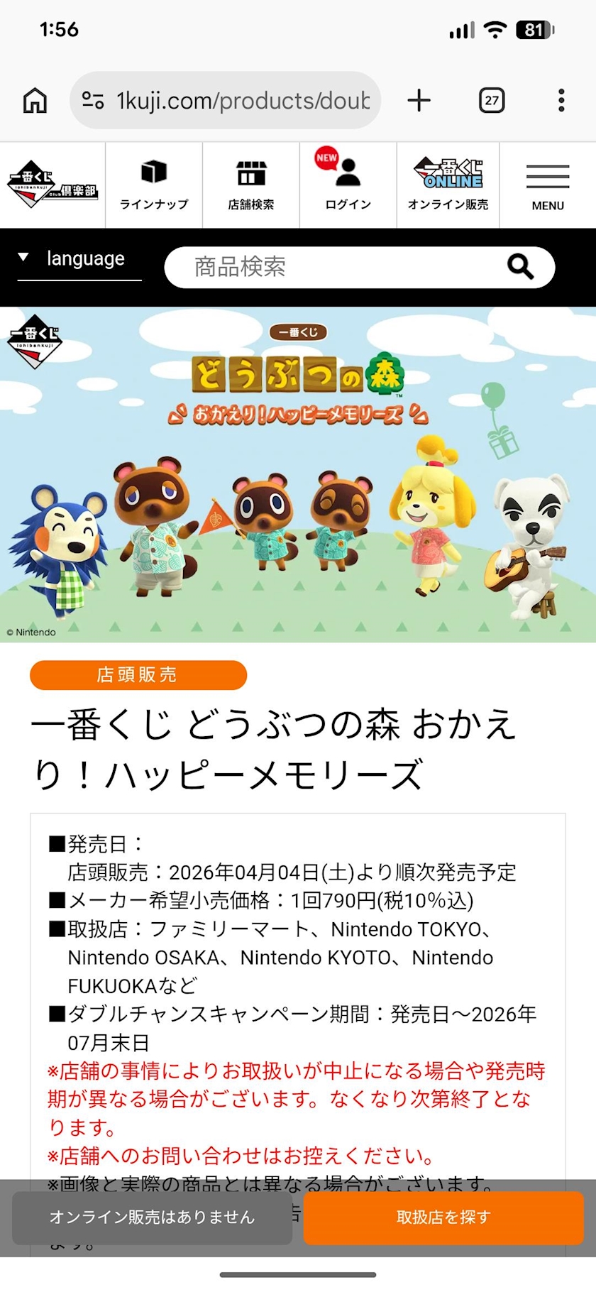 今日はどうぶつの森一番くじ発売日✨
