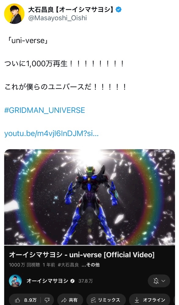 1,000万再生を達成したそうです🥳