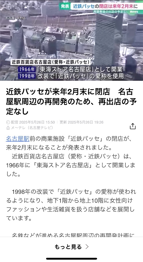 名鉄百貨店も2月に閉店することが