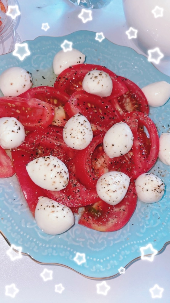 カプレーゼを作ってみたけどまだトマト苦手だったかも^_^💧💧💧