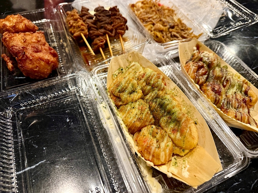 どて煮と唐揚げと焼きそばとたこ焼き2種