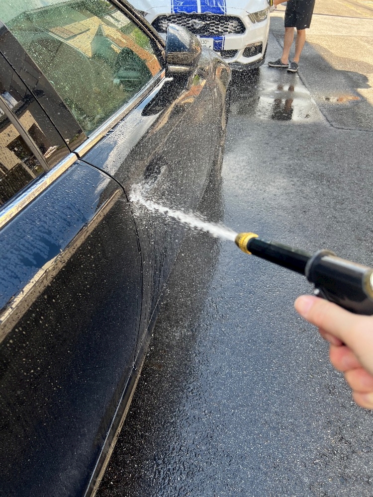 息子が洗車してたので