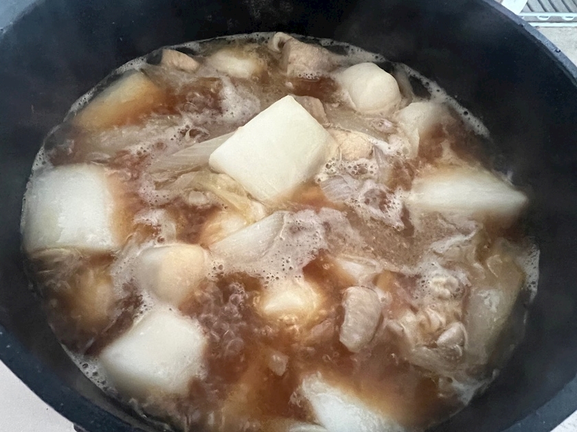 昨日の残りの煮物と