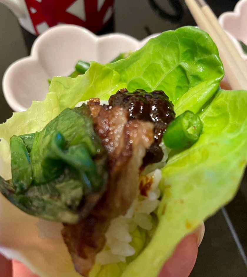 肉を焼いてサラダ菜で巻き巻き🥬