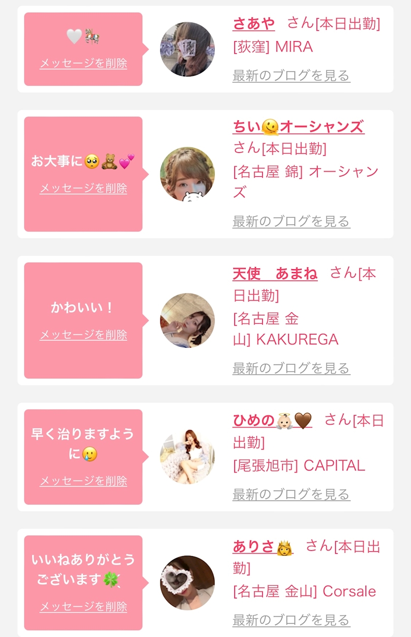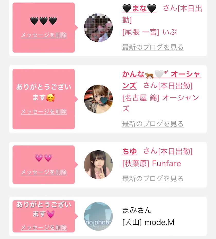本日出勤の女の子は