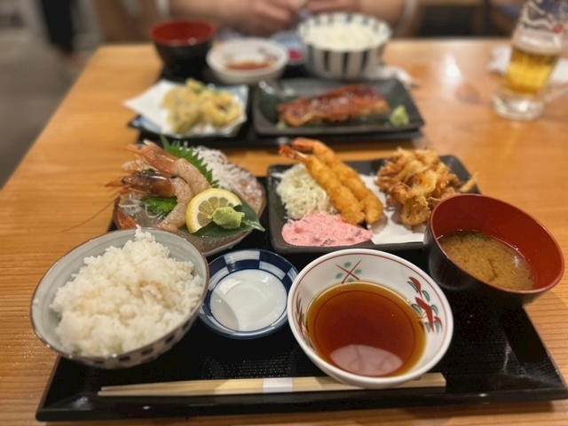 お刺身、エビフライ、エビのかき揚げにエビだらけだった🦐