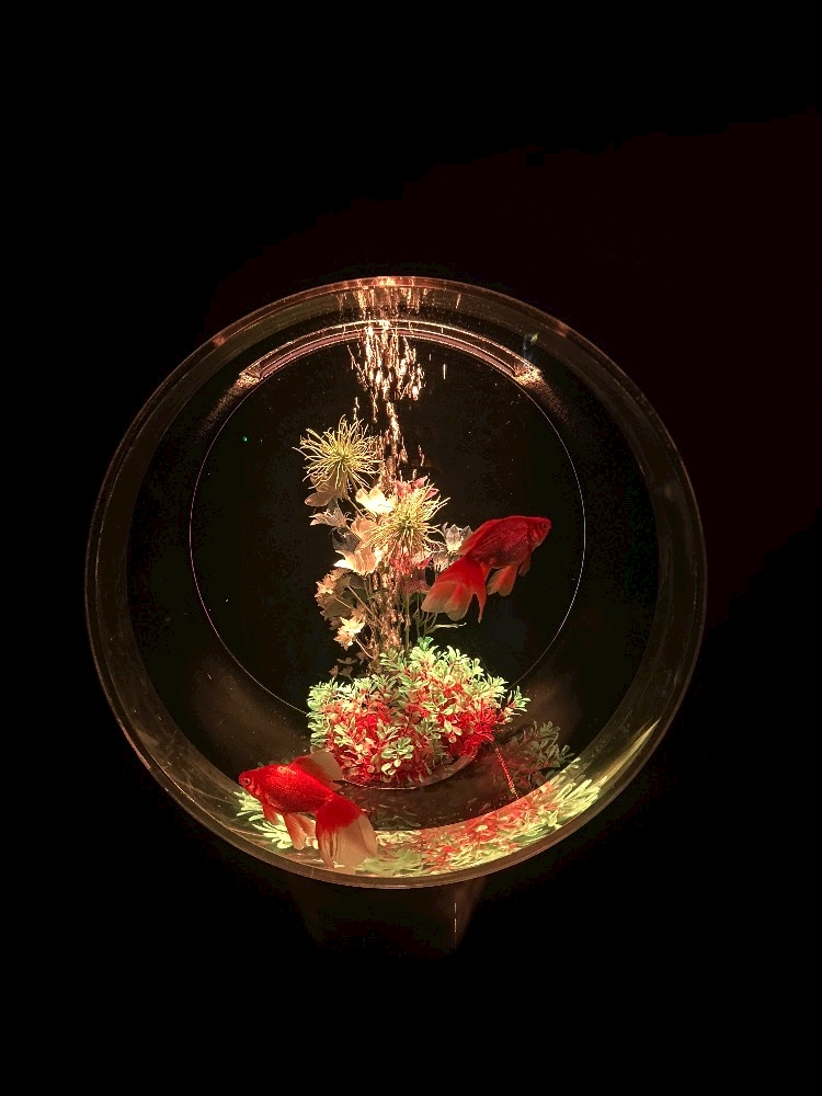 花と金魚を掛け合わせてそこに照明を当てた幻想的な空間なんだけど