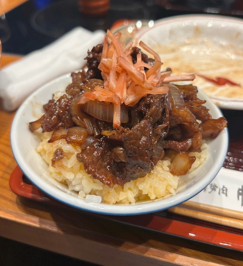 そこの名物のコロッケも牛丼も食べたくて色々食べられるメニューにした😊