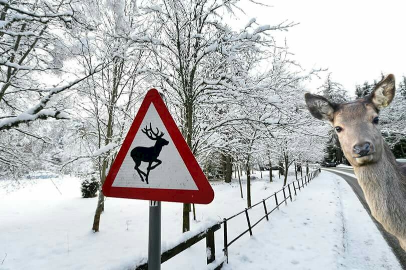 鹿に注意の看板も