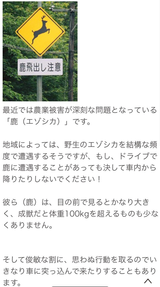鹿にぶつかって