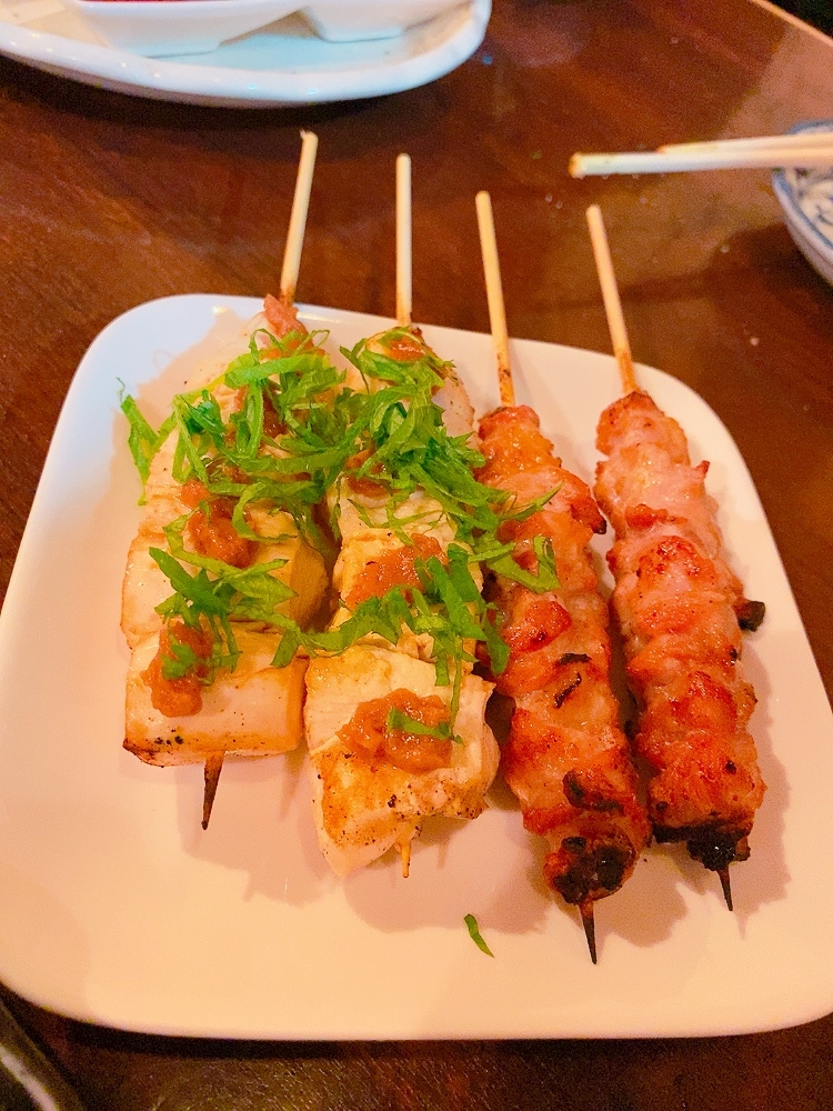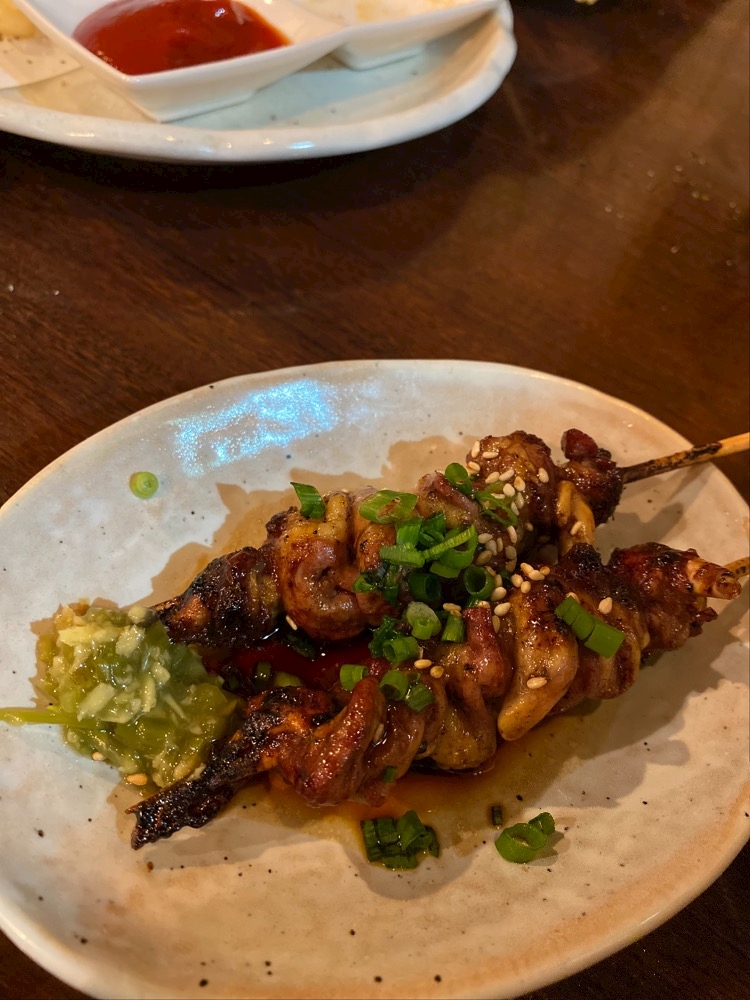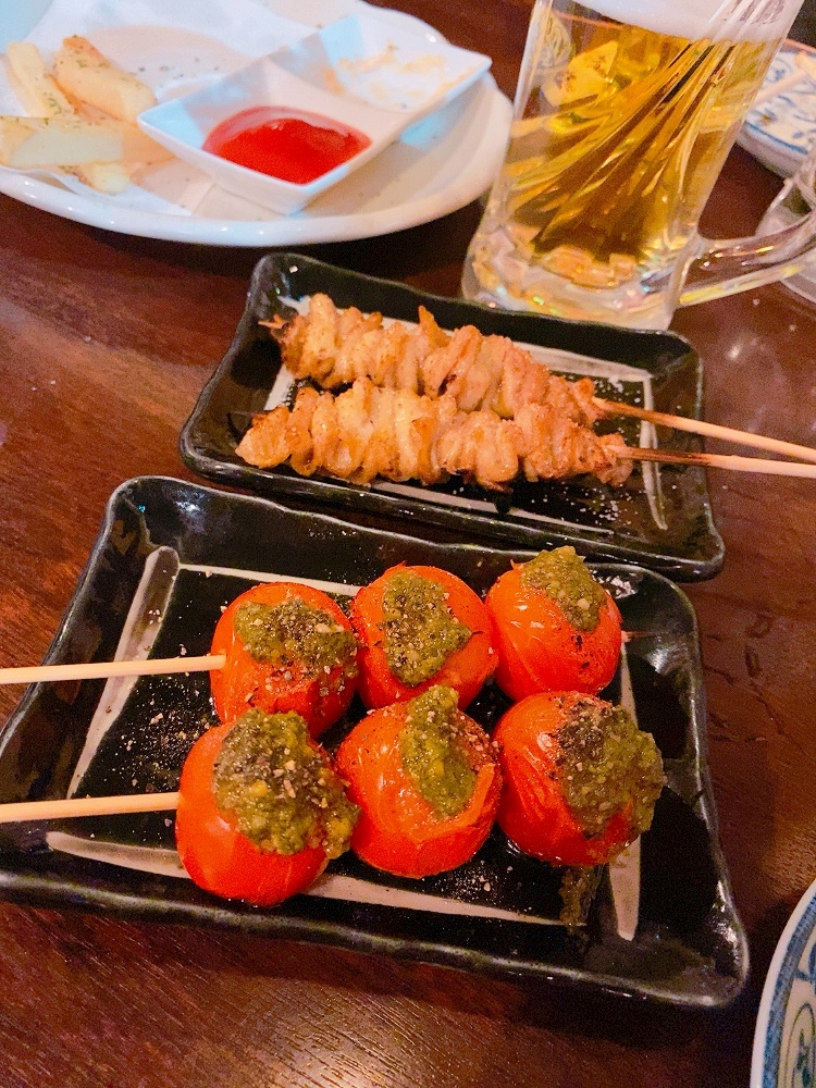 焼き鳥食べながら