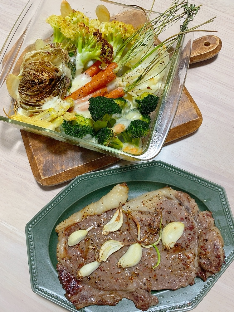 - お野菜たくさん🥦🧄🥕🥬🧅🌽と大きい黒毛和牛🐃
