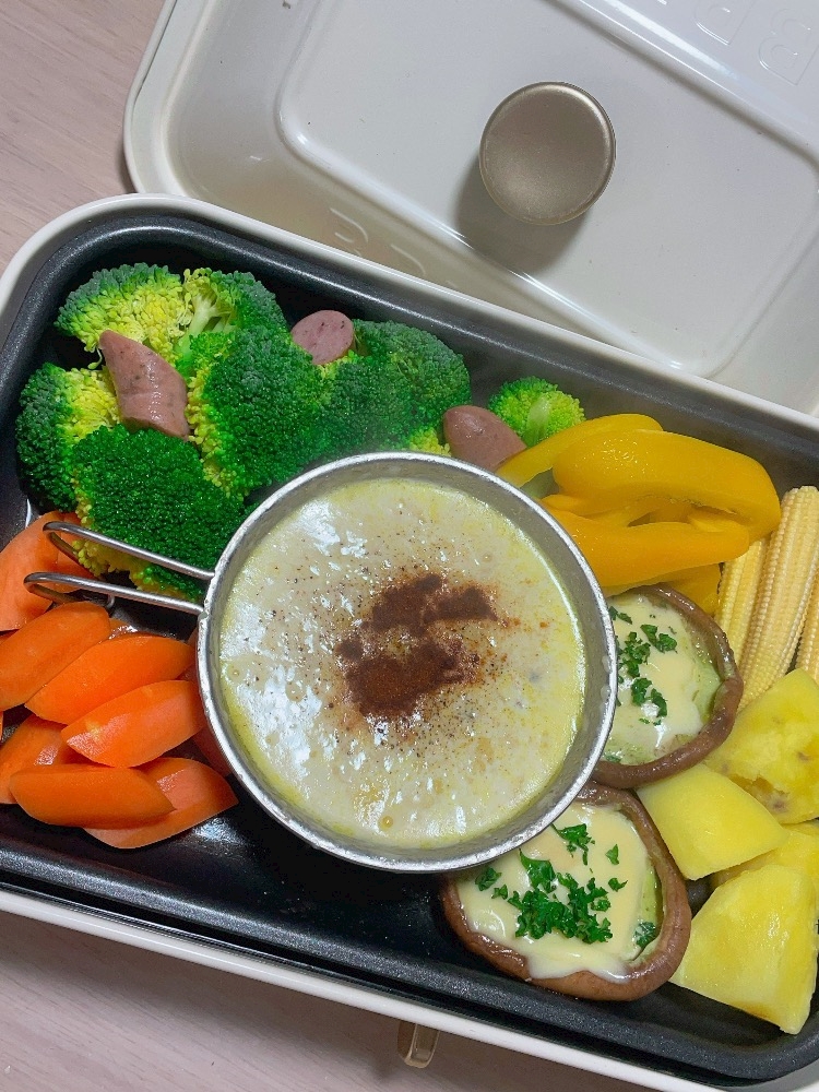- チーズフォンデュ🧀でお野菜さーん🥦🥕🥔🫑摂取💓