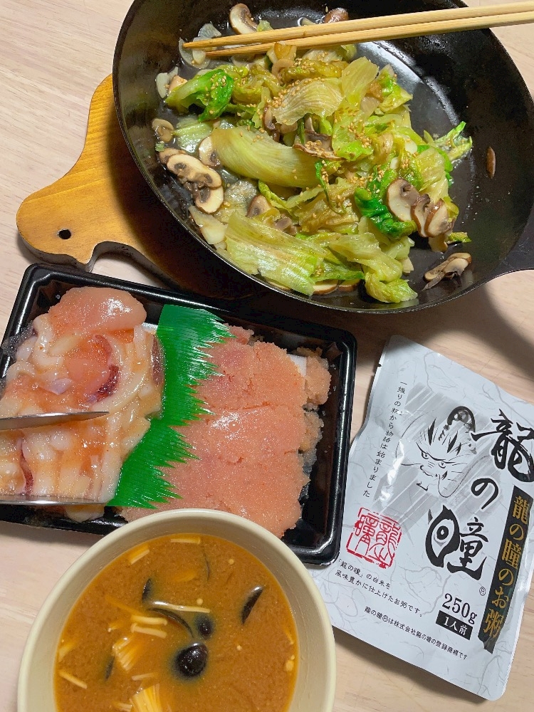 今日の美味しい適当メシ🍚🥢🥬🍄🦑