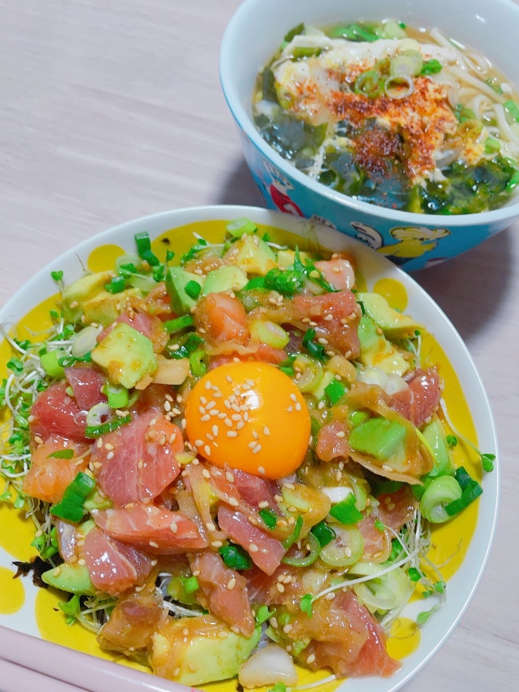 ポキ丼と五島うどん😍