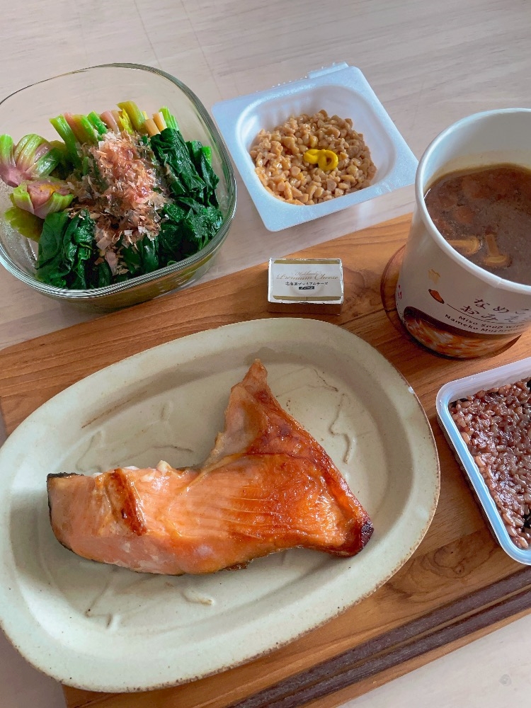 今日の出勤前きゃなぴーのおうちごはん🍚🐟🥢💕