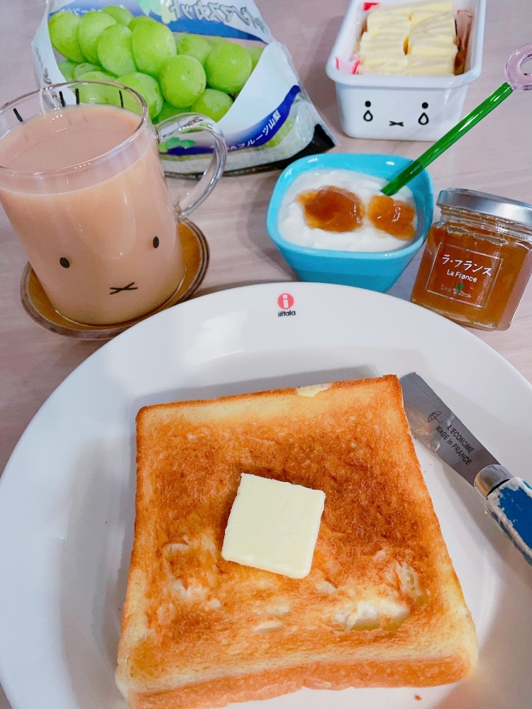 - おはようございまぁす💓💓💓高級フルーツ🍇とパンとヨーグル🍦