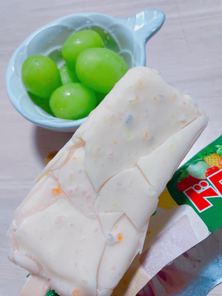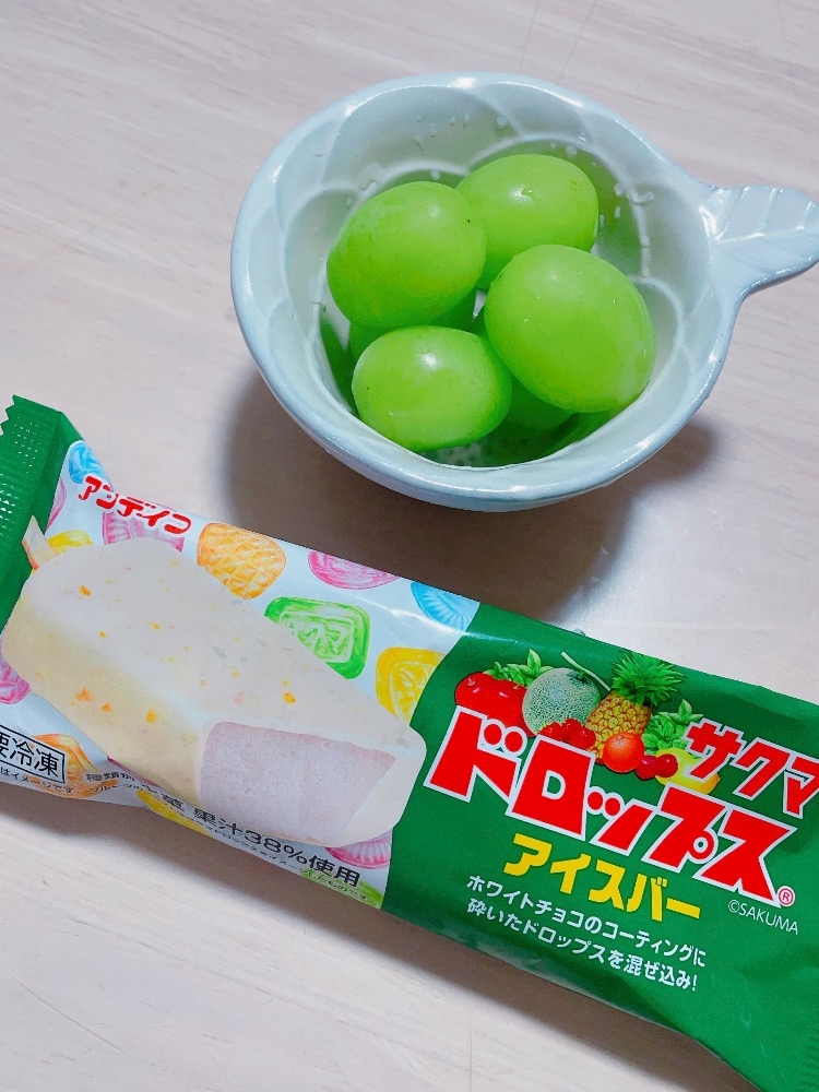 - サクマドロップスのアイスとシャインマスカット💕