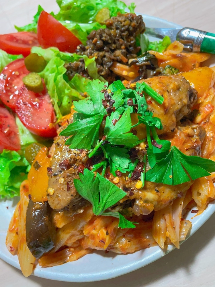 絡んでトマトソースと