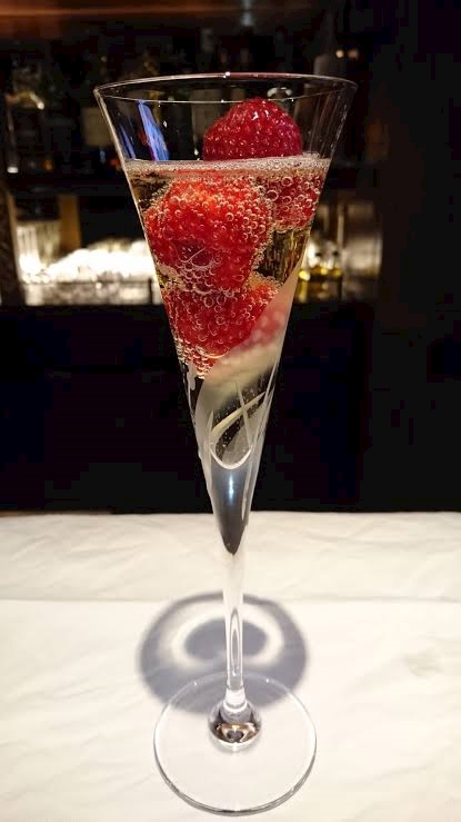 シャンパンの中にイチゴを入れるのを