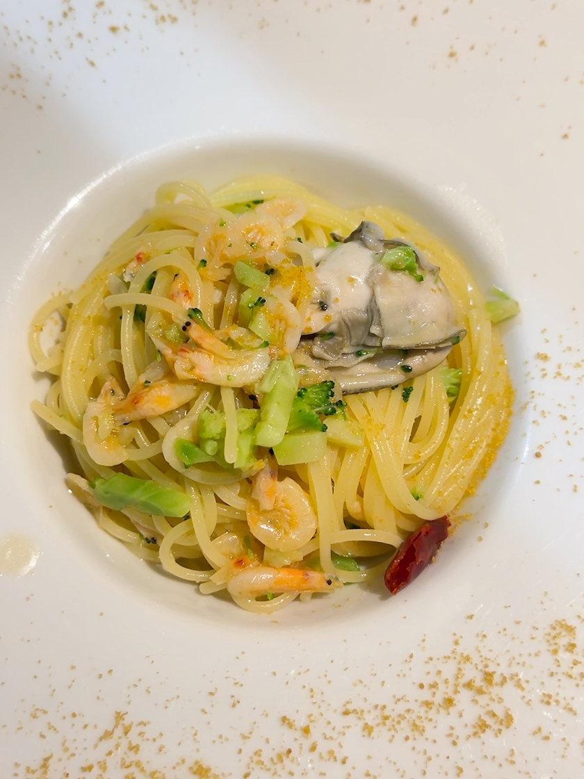 贅沢に牡蠣のパスタまでいただいて