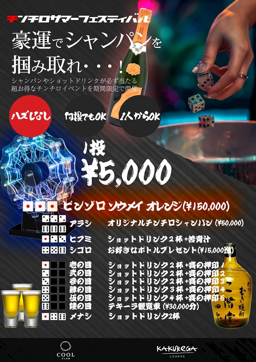 チンチロ振ってシャンパンが当たるかも…?🍾