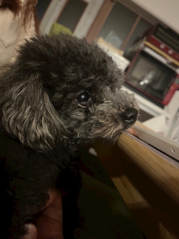 真っ黒で見にくいけど、机の上に顎乗せてるの✨