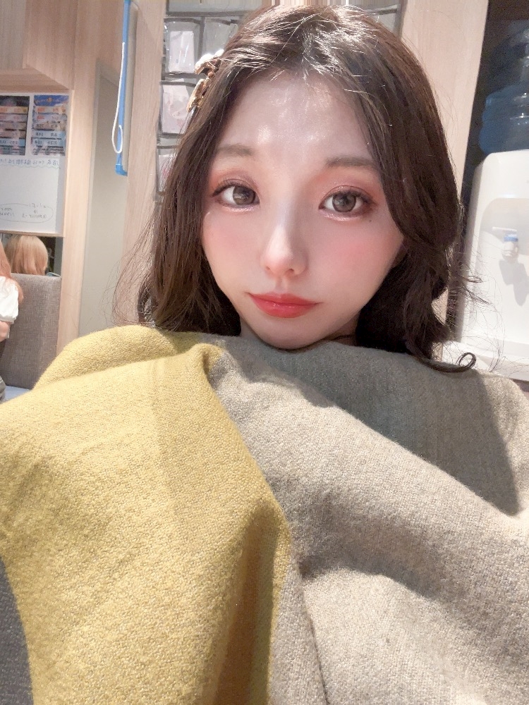 ちょいと寒いから、ロングマフラー⁇羽織って座ってる🧣