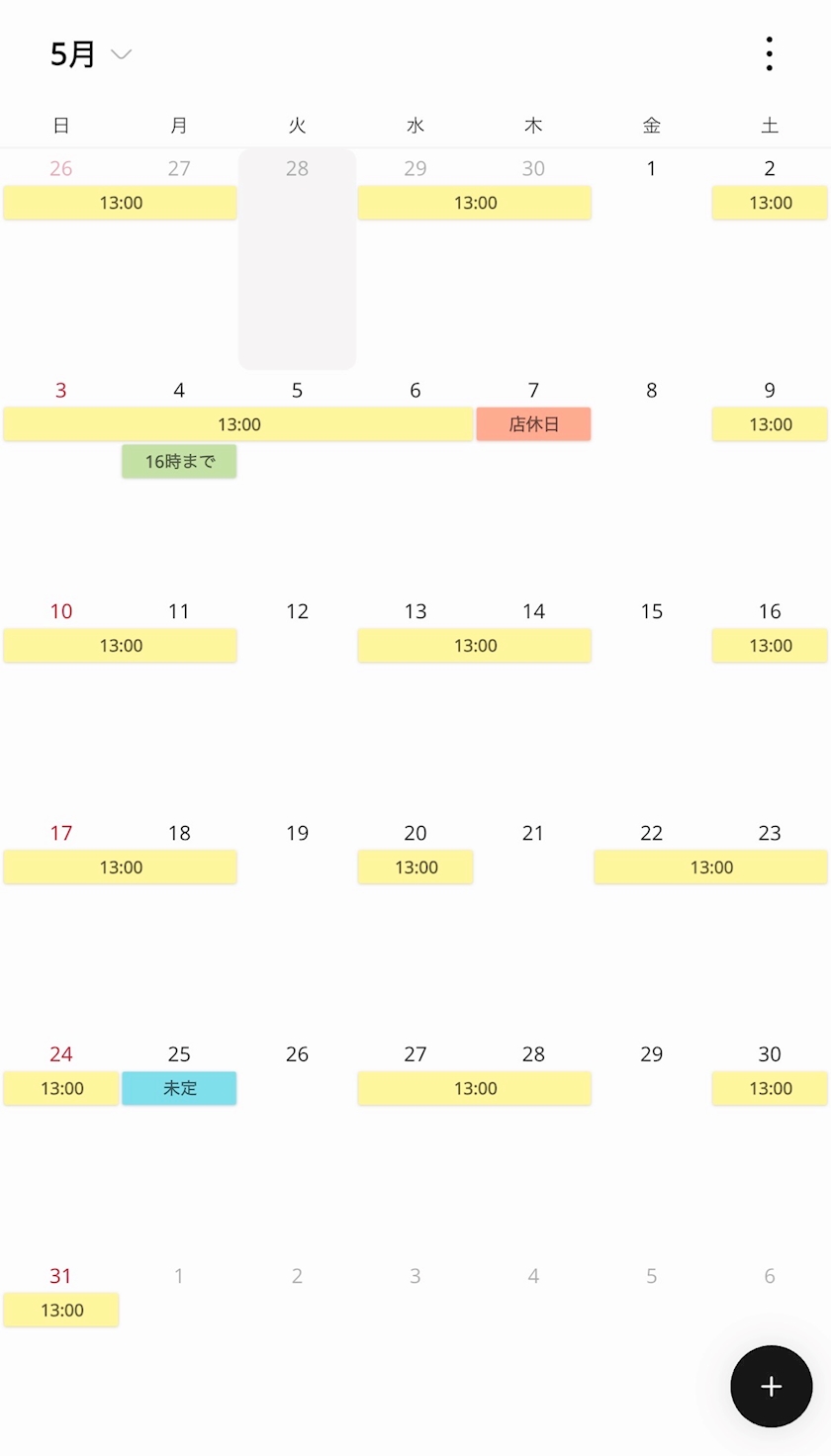 5月のシフト