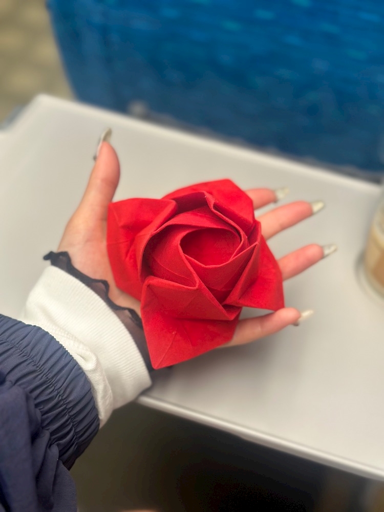 和紙の折り紙で作った薔薇をいただきました