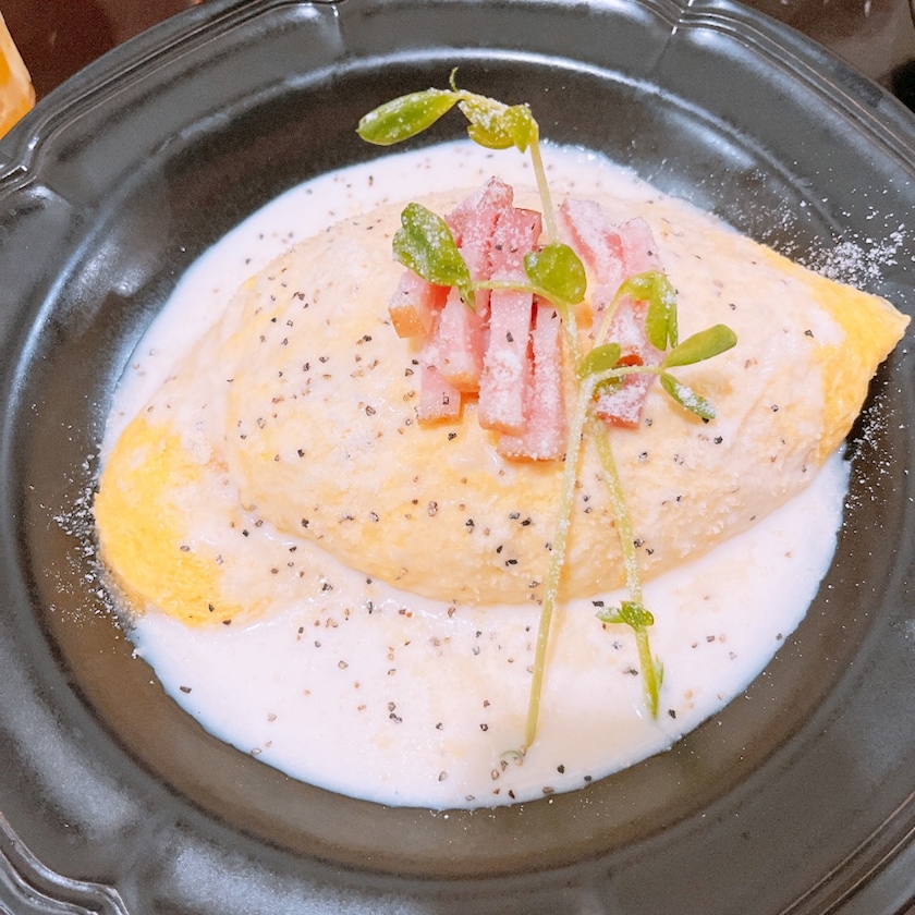 カルボナーラ風のオムライスを食べました
