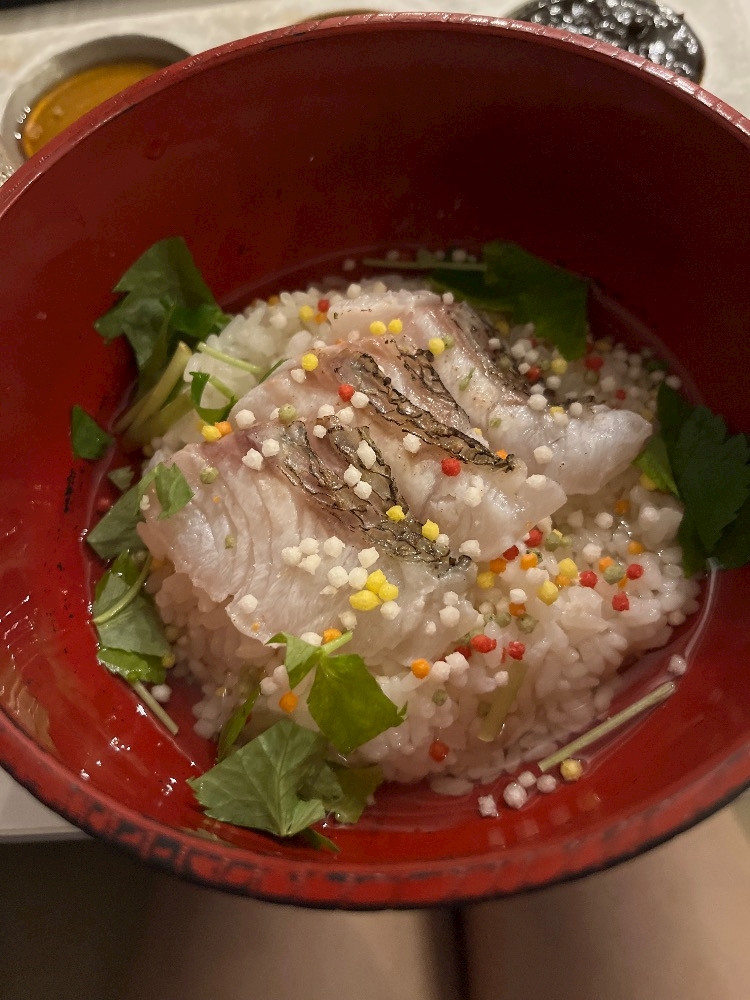 これは鯛茶漬けです、またポッピングシャワーかかっててかわいい