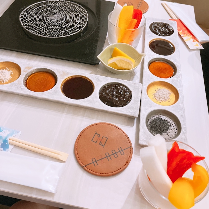 そして、特製みそとオリジナルソースとだし醤油とトリュフ塩と炭塩、好きなやつをつけろスタイル
