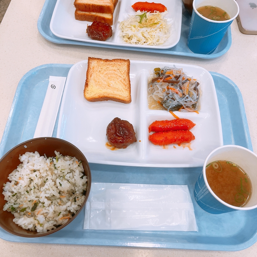パンあったからパン取ったけど、進んでったらおいしそうなごはんがあったごはんも食べちゃった🙃🙂