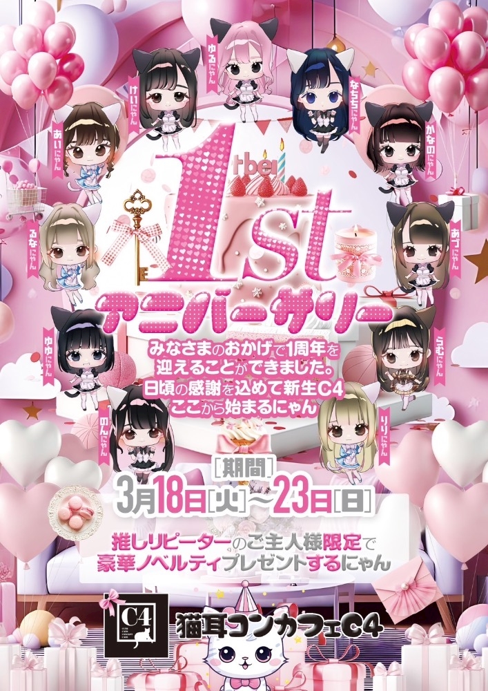1st Anniversary 🐈⬛🎀 - ゆる - 猫耳コンカフェ C4・シーフォー - 名古屋 金山のコンカフェ