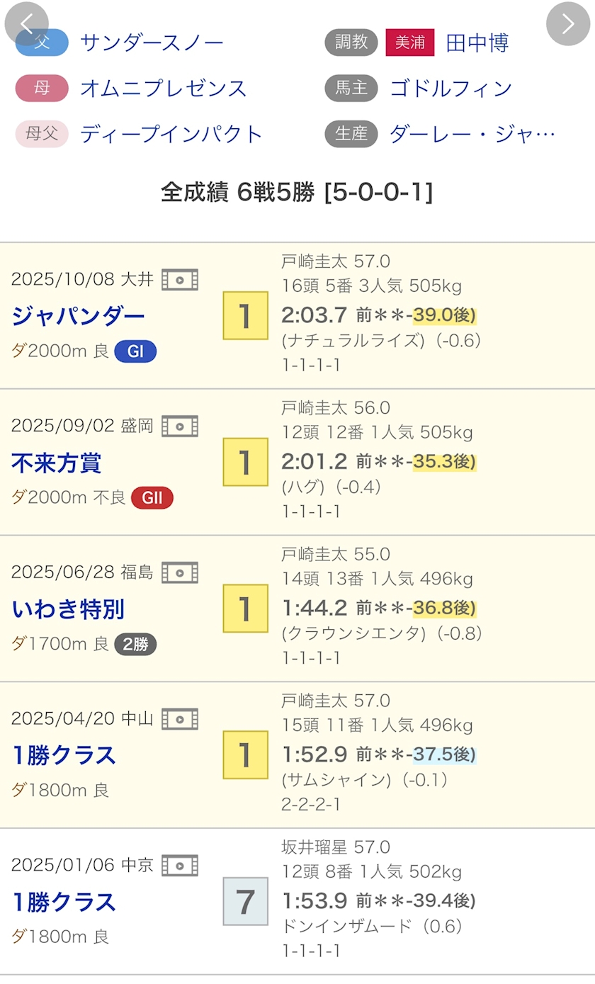 唯一の負けが中京やし、ダート適正はほんとにあるのか??心配どころ