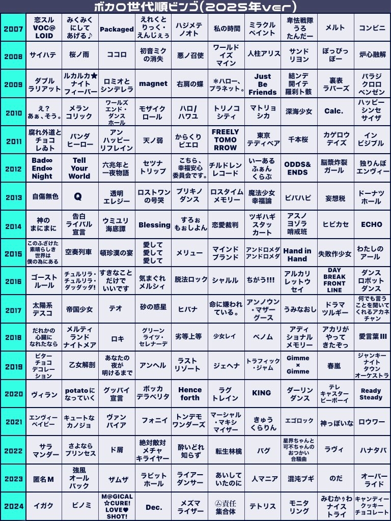 ボカロ世代ビンゴ❕