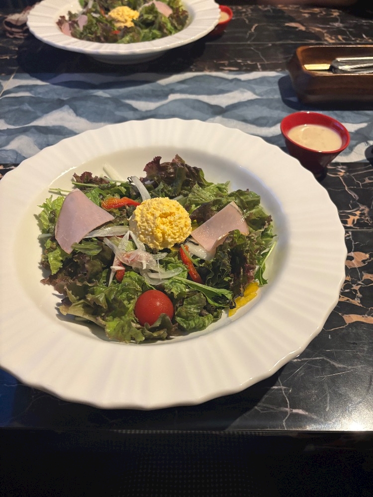 サラダがめっちゃ大きいお皿に1人ずつきて
