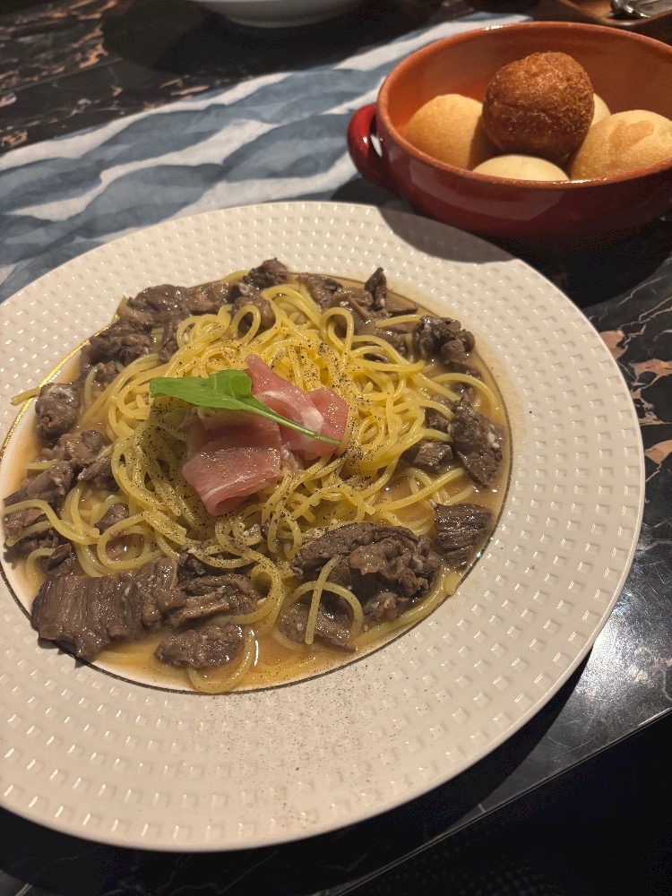 レモンの酸っぱさとパスタとお肉がマッチしとって美味しかったよーん😋😋
