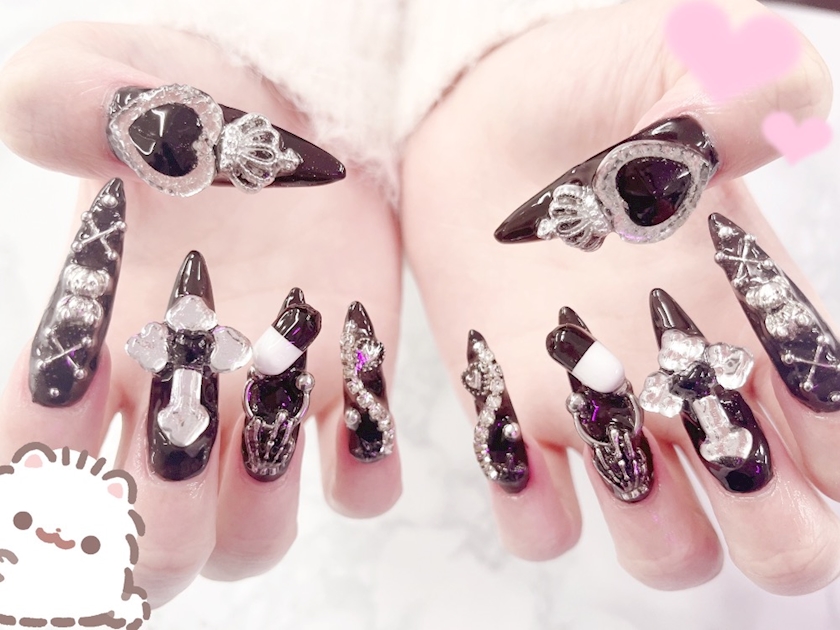 ネイル変えたよ💅💗黒✖️シルバーでサブカル地雷つよつよネイル🥀🖤 - るい🐈 - 金山 ガールズバー・ホワイト