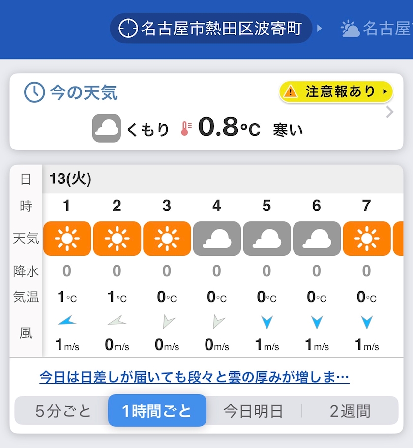 只今の外の気温は1℃🥲