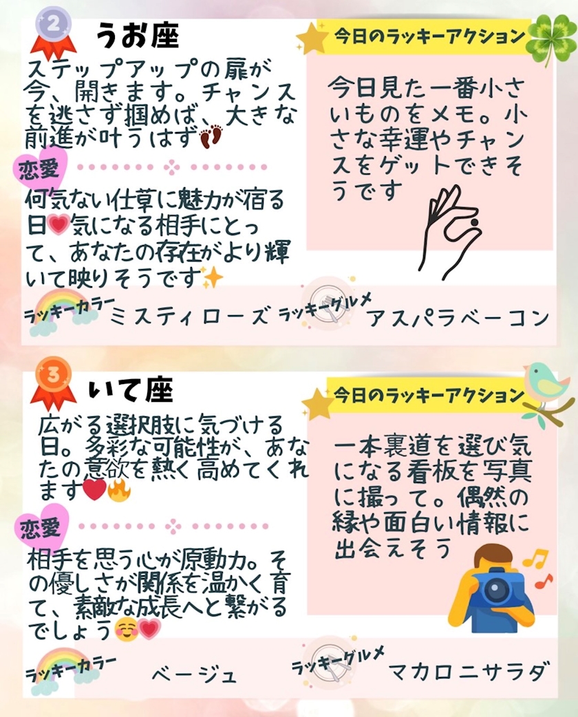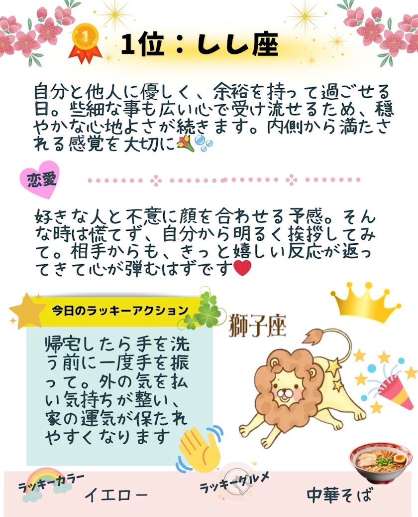 私は射手座で3位だったんだけど、書いてあるラッキーアクションがなかなか癖強だった🤣🤣🤣