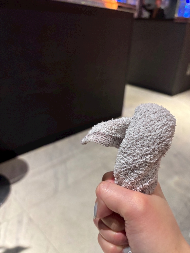 おしぼりいじってた