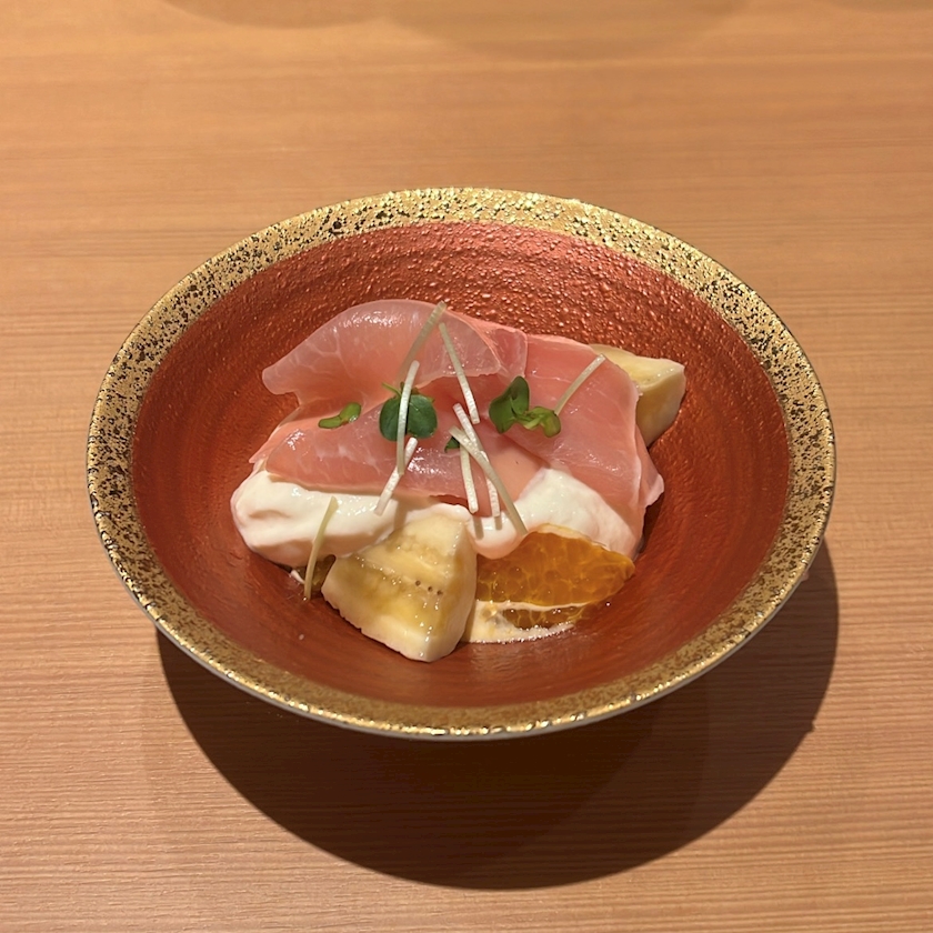 「生ハムとフルーツの白和え」