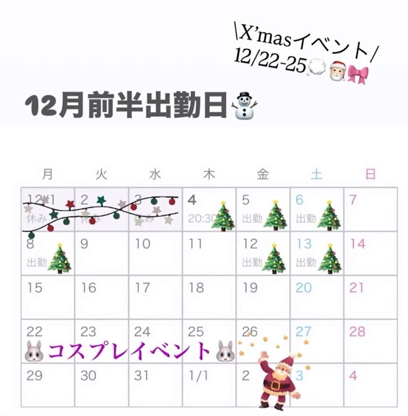 🎅🏻12月前半出勤日🎅🏻
