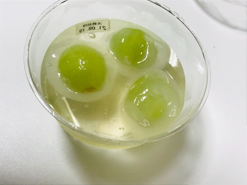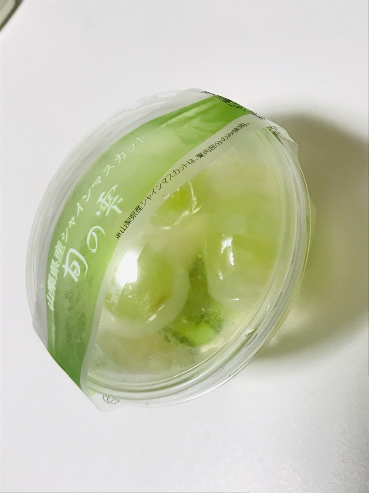 マスカットゼリー?の中に、お餅?に包まれたマスカットが入ってた😳(イマイチどんなスイーツなのかよく分からず買ったから、上手く説明ができないwww)