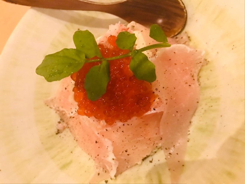 生ハムに包まれて、上にはいくらがのってるの😳
