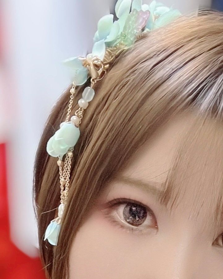 チャラチャラしたヘアアクセつけとります🎶