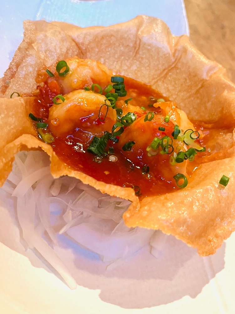 これ、器も春巻きの皮?が揚げてあってパリパリな食べられるやつなの😳