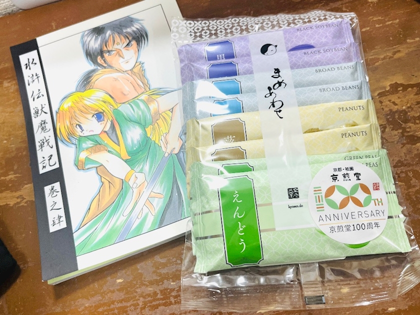 お豆のお煎餅と、神さんが昔作った小説の4巻✨